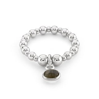 Labradorite Birthstone Charm Beaded Ring