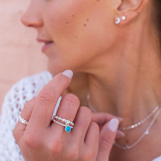 Turquoise Birthstone Charm Beaded Ring