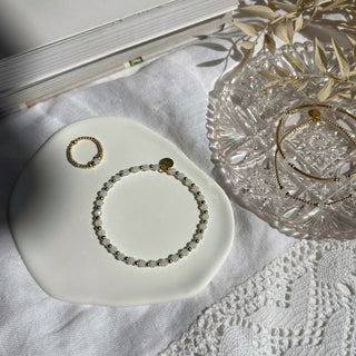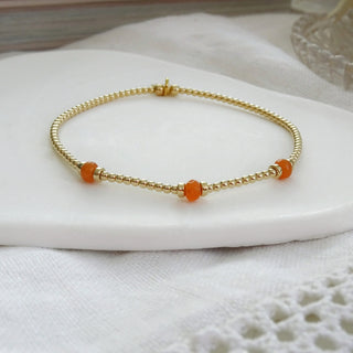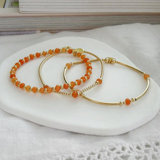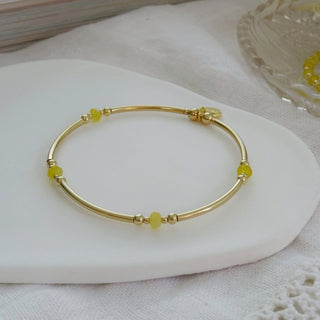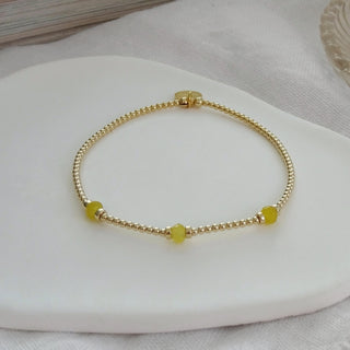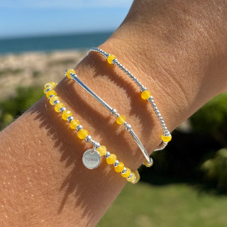 Add a pop of joy to your jewellery box with The Colour Collection - a playful range of stacking bracelets and dainty rings handcrafted in the UK. Available in sterling silver or 9ct gold filled, each design features faceted pastel gemstones in yellow, blue, pink, green, orange and white.